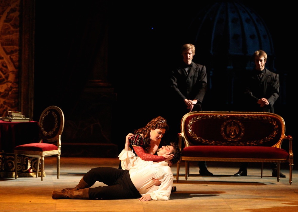 Из всей тройки певцов, солирующих в главных партиях, истинную культуру пения привносит в спектакль один лишь Сергей Лейферкус: его мастерство психологически тонкого и многопланового музыкального портрета, который он создает для своего персонажа, поистине безупречно. Смысловая наполненность каждой музыкальной фразы, каждый интонационный штрих, каждый актерский жест, складываясь в единое целое, создают незабываемо яркий, «злодейски притягательный» образ. Не поверить в его правдивость и убедительность просто невозможно! Чисто лирические роли – то, с чего певец когда-то начинал, но сегодня в его голосе вполне четко проступила и форманта драматическая. В сочетании с высочайшей культурой академического звуковедения, демонстрируемого исполнителем, сегодня это приводит к поистине ошеломляющему результату: подача музыкальной фразы предстает не просто стилистически выдержанной, но на редкость сочной и «вкусной», по-итальянски акцентированной и темпераментной.