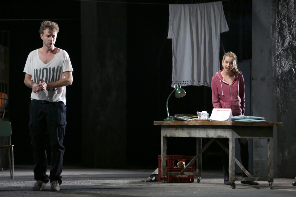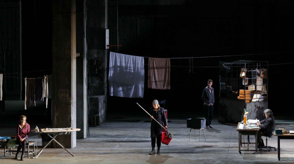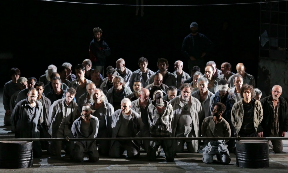 Брюки, рубашки, жилеты, рабочие комбинезоны, мини-юбки, майки, куртки и кроссовки – в этот много раз виденный арсенал разодела персонажей бетховенской «оперы спасения», первая версия которой восходит к 1804 году, художница по костюмам Клоэ Оболенски. Ей же принадлежала сценография миланского «Фиделио». Тюрьма, в которую проникает Леонора, скорее всего временная и наспех организованная... бывшая фабрика или огромный ангар? Высокие стены, колонны из железобетона, металлические бочки из-под горючего. Излишне говорить, что зрелище было весьма мрачным, частенько грешившим однообразием. Каземат, в котором томился Флорестан, находился глубоко под землей, и Леонора с Рокко вынуждены были освещать себе дорогу электрическими факелами.