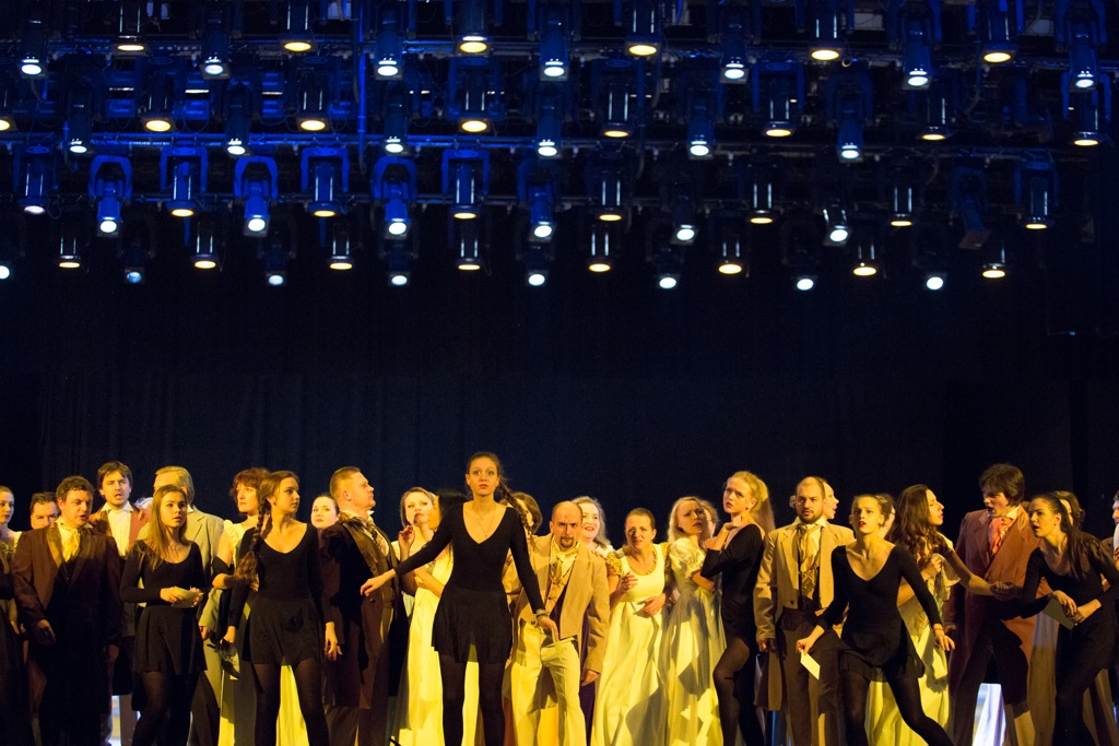 В спектакле ощущается также драматургическая и мизансценическая невнятность. Так, например, интродукция с катающимся по сцене героем (вот уж находка!) неубедительно перетекает в сцену в Летнем саду, контраст между ними – очень важный у Чайковского – смазан, да его попросту нет. И в дальнейшем эта экспозиционная сцена выглядит весьма противоречиво. Карталов стремится в ней отойти от прямолинейного реализма и придать сугубо символическое значение сквозь призму видений Германа, что подчеркивается, кстати, полным отсутствием сада как такового. Но, например, сценическое поведение Хора мальчиков-солдатов в этом ракурсе выглядит на удивление стандартным, хотя с ними и марширует «бредящий» Герман. Не нашлось оригинальных выразительных средств и для важнейшего драматургического узла этой сцены – квинтета.