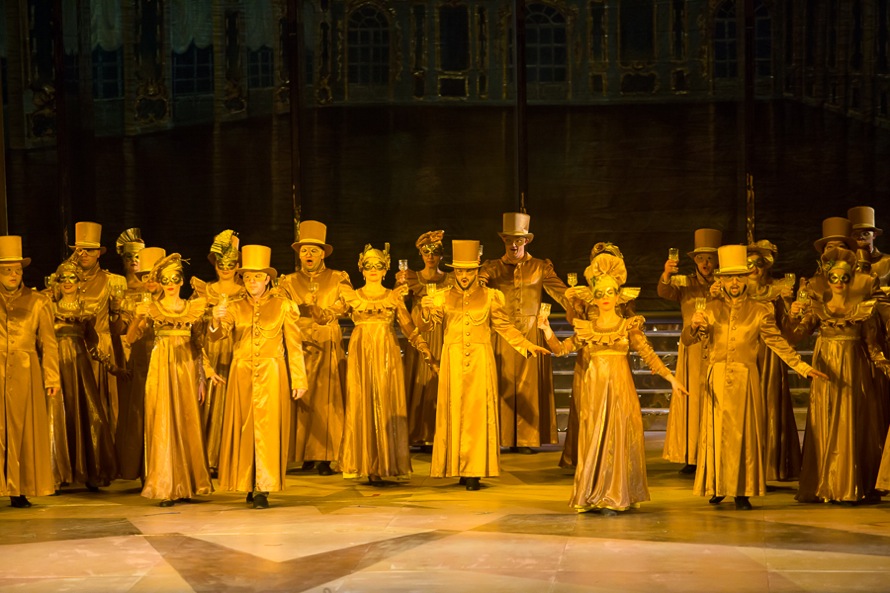 После двух представлений «Паяцев» перестроиться на восприятие «Пиковой дамы» непросто. Однако такой контраст оказался уместным в рамках общей драматургии форума. О постановке болгарского режиссера Пламена Карталова, премьера которой состоялась летом 2014 года, наш журнал уже писал – подробную рецензию можно найти здесь. Поэтому ограничусь достаточно общими впечатлениями от самого спектакля.