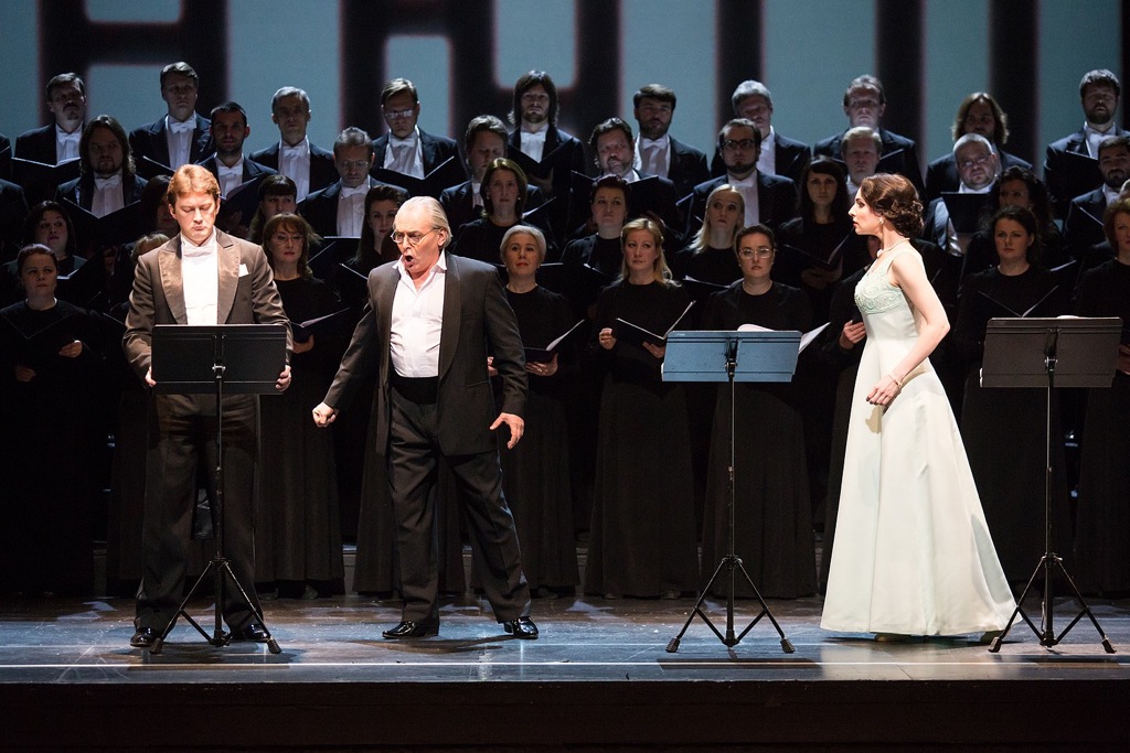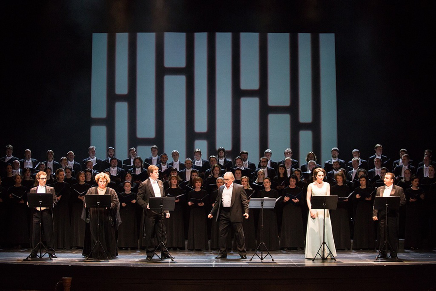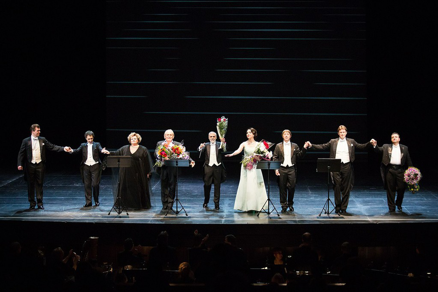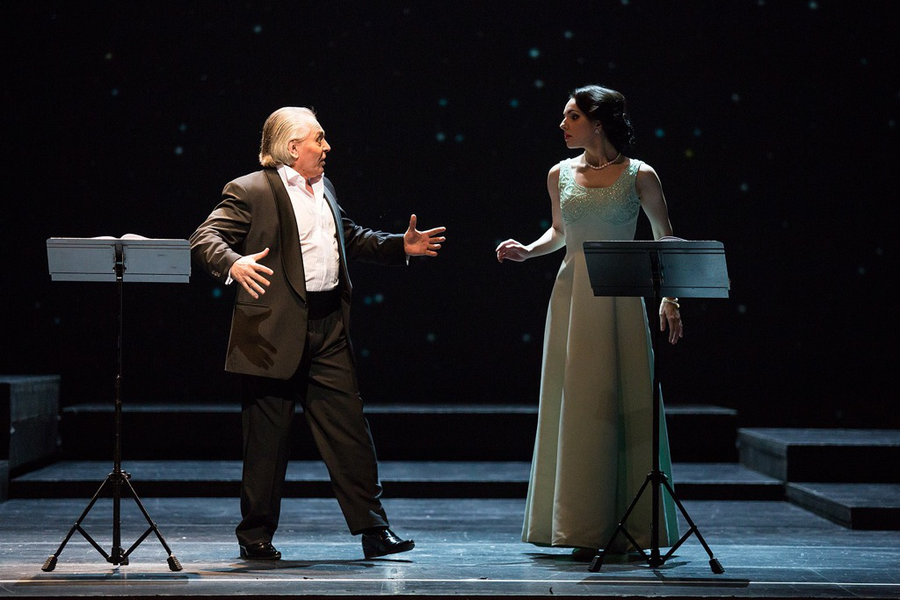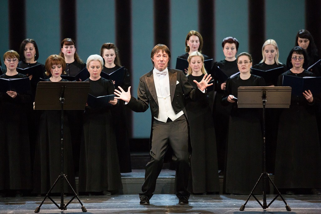 Напоследок — о режиссерских решениях. Ведь концертные исполнения в Новой Опере никогда не проходят в стиле «просто вышли и спели». На таких мероприятиях оттачивают постановочные навыки режиссеры театра. В данном случае