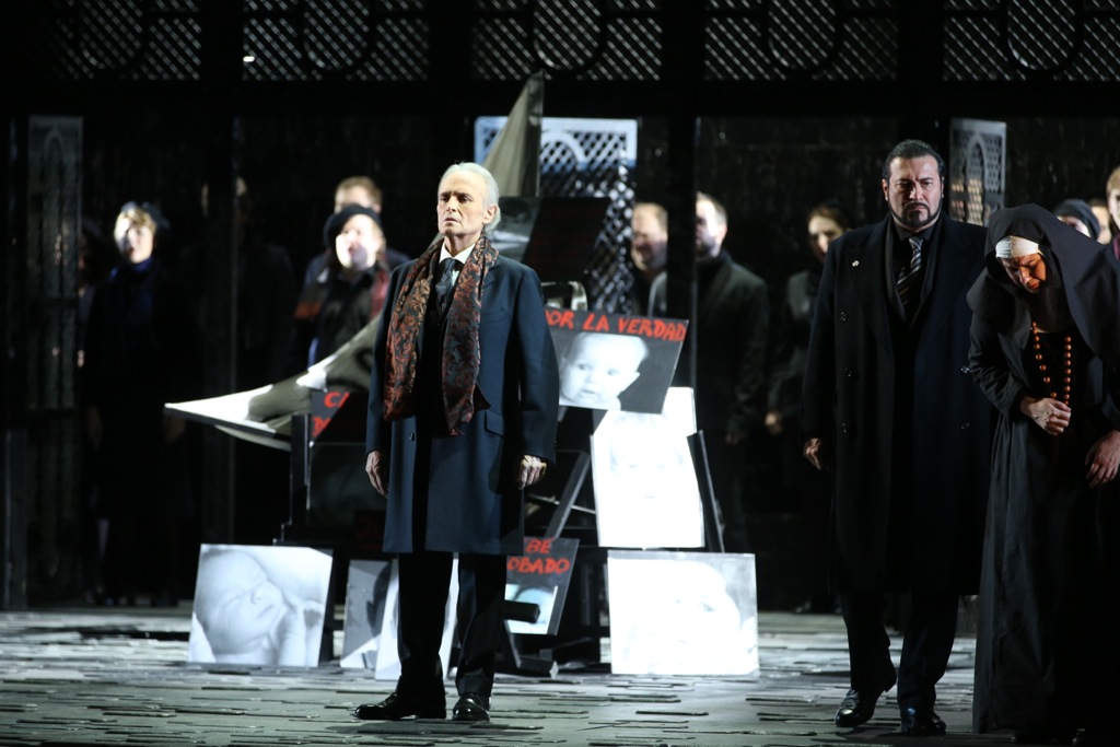 Сценографический образ чуть прямолинеен, но красив – ажурная металлическая клетка, отсветы решётки которой ложатся на лица людей. За клеткой теснится людская масса с портретами детей, чьи настоящие документы погребены в монастырских шкафах. Раскрываясь, клетка создаёт интерьер дома судьи или мрачное пространство, где в монастыре прежде обитали дети. Постановщик Эмилио Саги пользуется шоковым приёмом, с шумом обрушивая с колосников груду целлулоидных кукол-младенцев в момент, когда в помещение врывается толпа с портретами. Драматизм здесь достигнут значительного накала.