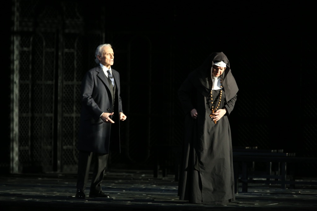 Привлекательное меццо-сопрано Анна Ибарра была достаточно драматична в роли Настоятельницы. Её героиня до времени скрывает правду происхождения судьи Рибаса, но, любя его как сына, всё же открывает истину – Гарсия его родной брат.