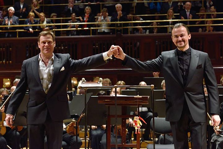 В первом отделении концерта прозвучали сцены – не могу сказать по-другому, поскольку это были именно сцены, наполненные не только музыкально, но и артистически-визуально, – из «Волшебной флейты» и «Дон Жуана». Со своего первого выхода в образе Папагено с арией “Der Vogelfanger bin ich ja” Саймон Кинлисайд завовевал симпатии публики не только своим прекрасным баритоном, но и актерским решением, с комическим акцентом и динамичностью, напоминающим того Птицелова, которого он неоднократно пел в замечательной постановке «Флейты» МакВикара в Ковент-Гардене. Контраст юмору и дурашливости Папагено составил Зарастро, мудрый и исполненный достоинства, в исполнении Штефана Коцана, продемонстрировавшего не только свой прекрасный бас, особо впечатляющий в нижних регистрах, но и умение держаться с достоинством и величием, необходимыми для воплощения образа великого мудреца.