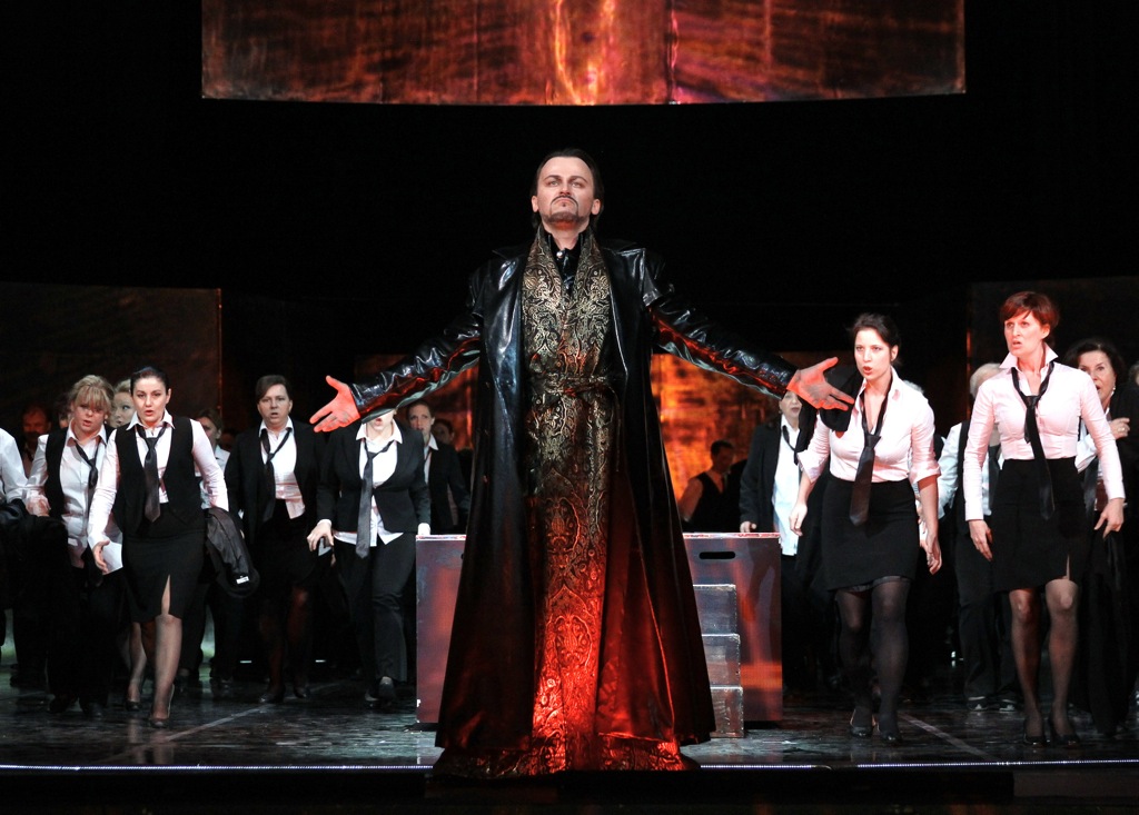 Если говорить о солистах, то прежде всего, конечно, значимой фигурой является Мефистофель, именно на нем и сконцентрировал свое внимание Бойто-либреттист и Бойто-композитор. Мефистофель как воплощение вечного отрицания добра, красоты и истины, Мефистофель, уверенный в своей способности одержать победу над небесными силами через греховность человека, выражает себя в знаменитой арии «Son lo spirit», которая у меня ассоциировалась с исполнением Шаляпина и Чезаре Сьепи. В исполнении Петера Микулаша, обладателя красивого «бархатного» голоса, дух зла скорее напоминал мудрого советчика, который слишком хорошо знает этот мир, чтобы допускать какие-либо иллюзии. Вокально Мефистофелю не хватало темных ноток угрозы, скрывающихся за обольстительными обещаниями, внешне артист был похож на благожелательного, умудренного опытом человека, направляющего заблудившегося на жизненном пути ученого. Будучи несколько смущенной такой трактовкой, я после спектакля спросила Петера, почему его Мефистофель представляется таким благожелательно-добрым, на что очаровательный в жизни (и на сцене) артист ответил: «Почему бы и нет? Ведь он хочет всем хорошего». Призывает к размышлению – где грань между добром и злом? И какие силу ведут борьбу за душу человека – можем ли мы это знать, и уверены ли мы в существовании бессмертной души? Эти вопросы в опере представлены многочисленными хоровыми эпизодами, которые были очень качественно озвучены под руководством хормейстера Мартина Бухта. Режиссер – Иван Крежчи – показал типичную для режиссерской оперы постановку с элементами современности, фэнтези и фольклора.