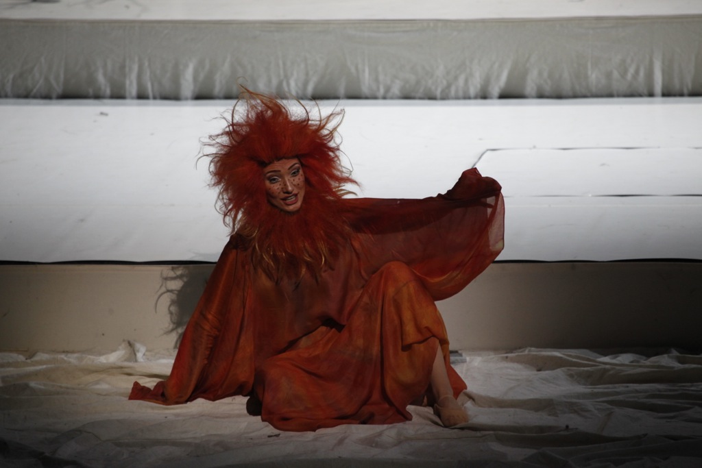 Все это не вполне соответствует традиционным сценическим интерпретациям оперы, однако логика режиссера-постановщика в конечном счете убеждает. Любопытная режиссерская находка – преображенный его фантазией пастушок Лель. В спектакле это один из самых необычных по характеру, эпатирующий своей внешностью персонаж: он весь как бы обрамлен трепещущими языками пламени. Но и это можно оправдать: режиссер лишь акцентировал прописанную драматургом и композитором близость Леля Яриле-Солнцу. Его песни, пронизанные любовным жаром и воспламеняющие сердца людей, стали губительными для Снегурочки. Впечатляющая сценическая метафора – таяние Снегурочки, которую поглощает исходящее от Леля пламя.