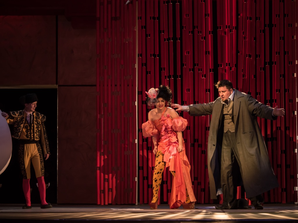 Современные прочтения оперной классики приучили уже, видимо, не только прожженных меломанов, но и зрителя, захаживающего в театр время от времени, разделять увиденное на сцене и услышанное в зале. К счастью, ключевые мизансцены были выдержаны в рамках либреттных предписаний, за исключением двух сцен, отмеченных выше, и интересной в своем психологизме находки, когда Джильда выходит из спальни Герцога в наряде размалеванной гулящей девахи. Это дикое преображение главной героини виртуозно удалось как приглашенной исполнительнице этой партии Венере Гимадиевой, блестяще справившейся со всеми вокальными сложностями, прежде всего, знаменитого монолога «Caro nomo», так и местной сопрано Ирине Боженко, поразившей техническими изысками, несмотря на несколько «расплывчатое» звуковедение (если подходить к этой работе с жесткими академическими требованиями).