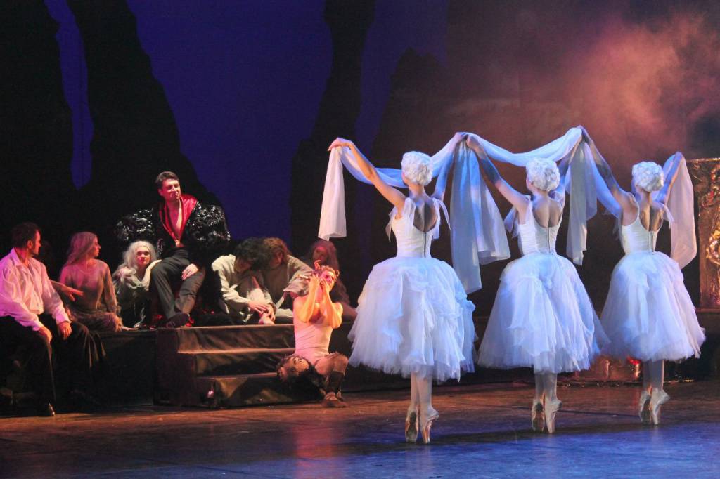Возвращаясь к исполнительскому мастерству певцов надо заметить, что двое певцов из ансамбля ведущих солистов – Геннадий Верхогляд (Фауст-старик) и Борис Гусев (Мефистофель) в вокально-стилистическом отношении явно недобирали: у первого это проявлялось в «тяжелой» харáктерности тембра, у второго – в «ухабистости» и неровности музыкальной линии. Вместо Александра Лейченкова, певшего в прошлый раз, в роли Фауста-юноши на сей раз выступил Артем Голубев, приглашенный на эту роль солист Пермского театра оперы и балета. Партия Фауста сложна как в плане тесситуры, так и своей тонкой вокальной настройкой и благородной изысканностью. В этой музыкальной ипостаси своему предшественнику новый солист явно уступал. Исполнительница партии Зибеля была прежняя, но если год назад Юлия Изотова смогла подкупить в ней непосредственностью и вокально-выразительной аффектацией, то на сей раз чрезмерное нагнетание вокальной мощи в погоне за акустической наполняемостью зала приводило в этой хрестоматийной партии-травести к нарочито утрированной заштампованности.