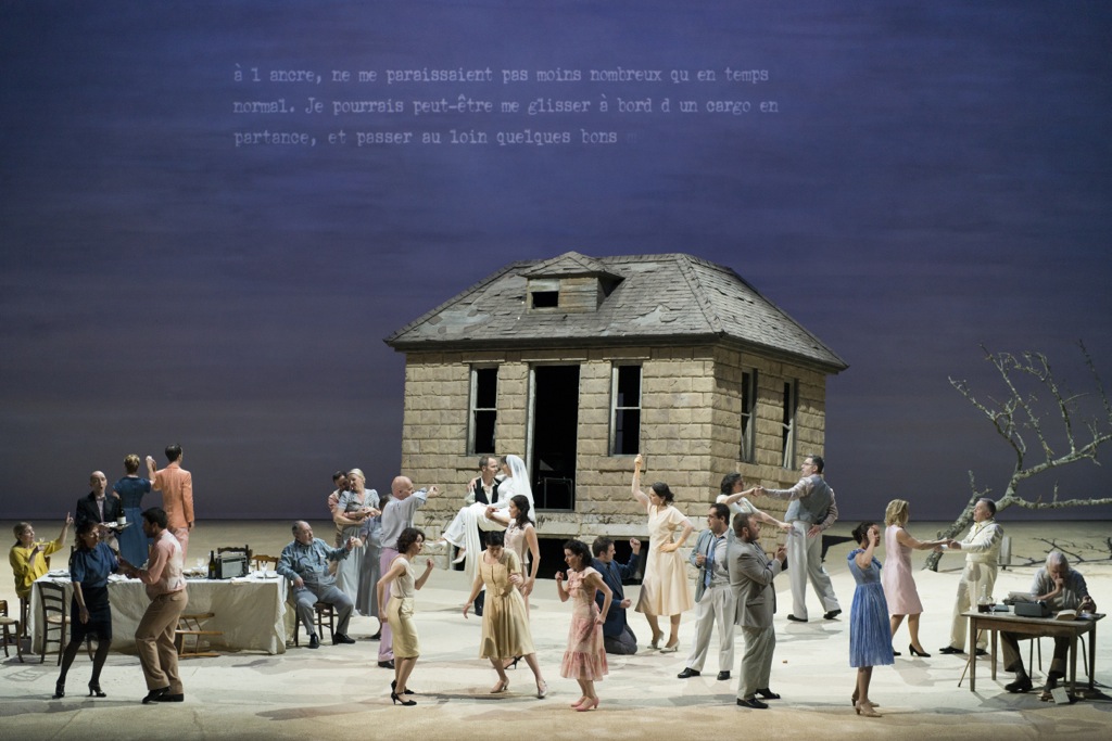 Сценография спектакля (художник – Кристиан Фридлендер), как мне кажется, прозрачно, хоть и не буквально, намекает на картину Сальвадора Дали «Аптекарь из Ампурдана в поисках абсолютного ничто»: тоже пустынный пейзаж, море, сухое дерево и странная незавершённая постройка в глубине сцены.
