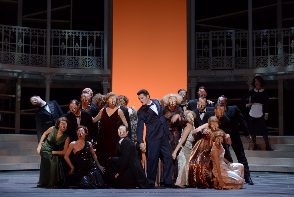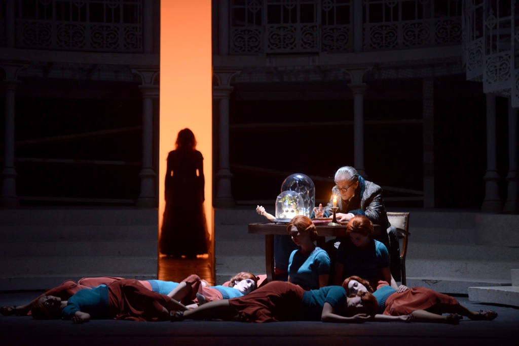Для этих целей при сохранении в спектакле основных конструктивных элементов сценографии Йохана Энгельса на расчистку театральных авгиевых конюшен в 2015 году был брошен режиссер Жан-Ромэн Весперини, еще один француз, моложе и, кажется, – в хорошем смысле слова – существенно креативнее своего предшественника. В новую команду влились художник по костюмам Седрик Тирадо и художник по свету Франсуа Фурé, а дополнили ее хореограф Селин Дюндар и главный хормейстер Хосе Луис Бассо, знакомый нам уже по «Сиду». Результаты вновь приложенных совместных усилий как раз и явили на свет фантома премьеры «Фауста», ведь серия спектаклей этого сезона как новая продукция не анонсировалась. На сайте театра можно было найти лишь сдержанную формулировку «nouvelle version» (новая версия). Чуть «более премьерное» определение «nouvelle mise en scène» (новая постановка) можно было прочитать в буклете к спектаклю и зрительской программке, но в любом случае о новой продукции («nouvelle production»), то есть о полноценной премьере, речи (почувствуйте разницу!), конечно же, не шло.