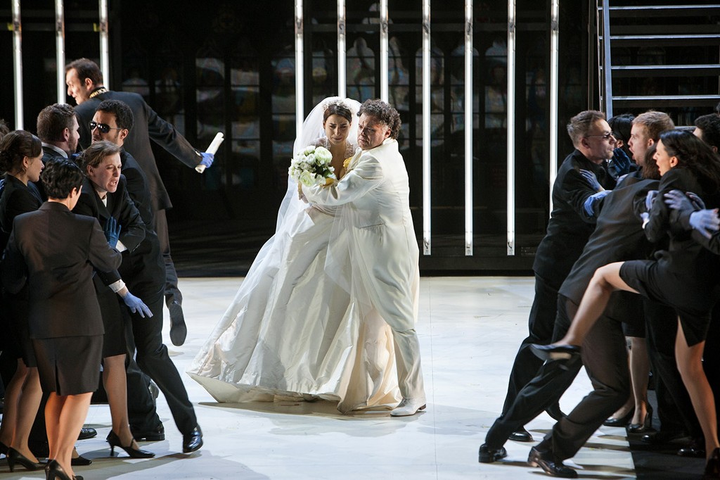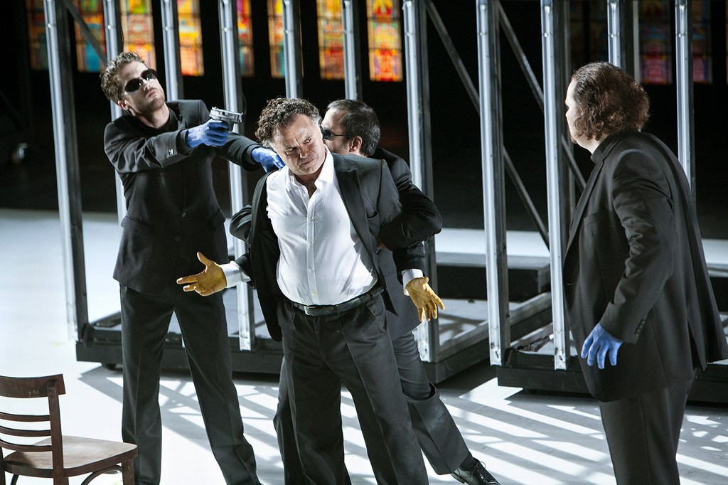 Кардинала Де Броньи поёт бас Дмитрий Ульянов, обладатель сгущённого тёмного тембра с несколько прямолинейной подачей звука. Тоже очень значительная и запоминающаяся работа. Пару огрехов в нижнем регистре, как соскользнувший с опоры звук, можно списать на волнение премьерного дня.