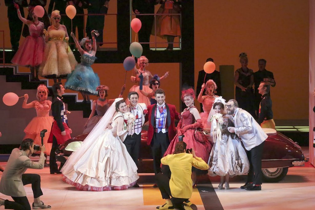 Кроме того, обещание, что «будет красиво» – здесь необходимо ещё назвать сценографа Зиновия Марголина и художника по костюмам Викторию Севрюкову – было исполнено. Опора на стилистику гламурного европейского послевоенного кино сделала узнаваемые приметы времени подчёркнуто театральными, а костюмы, даже у хора и статистов, нарядными, как из журнала мод. Что уж говорить про элегантную пижаму Графа, его эффектный охотничий костюм, нежнейшее неглиже или от-кутюр деловое платье и шляпку Графини. Свадебные наряды Графини и Сюзанны (которые, как помним, меняются одеждой) напоминают о великолепных туалетах Одри Хёпберн в «Римских каникулах» – пышное бело-розовое или бордовое с многослойными юбками, затянутая талия, тщательно уложенные локоны. В тайном уголке любой женской души просыпается маленькая девочка, при виде подобной «принцессной» роскоши сладко мечтающая: «мне бы такое платьице!»