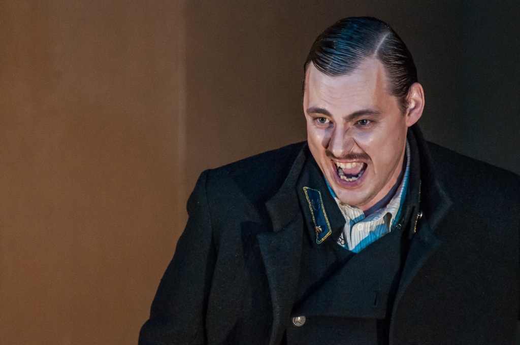 Но если свернуть с хоженых социально-политических и литературных троп, то для нас главнее сейчас подчеркнуть удивительное и опережающее свое время постмодернистское звучание сологубовской поэтики в «Мелком бесе» с ее пестрой и причудливой мозаикой образов и аллюзий, гримасами веселья сквозь слезы и провинциальные «страдания». Ее усилил Валерий Семеновский, автор пьесы «Тварь» по сологубовскому роману, на основе которой в соавторстве с композитором и написано либретто оперы. Семеновский основательно проперчил текст Сологуба, насытив его конкретными лезущими в уши литературными слоганами типа «Красота спасет мир», «Не могу молчать», «В Москву, в Москву», и разными бредовыми ситуациями. Есть изящные отсылки зрителя и к современным произведениям, например, упомянутого нами Виктора Ерофеева: «Ты русская красавица, а он идиот. Зачем тебе жизнь с идиотом?» – спрашивает Преполовенская (снабженная в перечне действующих лиц умопомрачительной характеристикой – «эмансипе») у Варвары… А чего стóят достойные театра абсурда «поминки» по русской литературе в финальном бале-маскараде или «Сцена плевания» на свадьбе Передонова и Варвары, где герои брызжут слюной, оплевывая всех и вся. Любопытно, что ни Семеновский, ни Журбин не боятся рикошета брызг, что они могут невзначай задеть их, превратив в персонажей знаменитых «Четырех иллюстраций» Даниила Хармса.