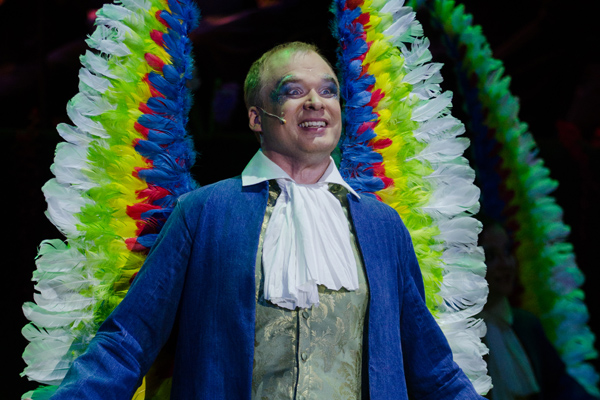 Что касается визуальной составляющей, здесь не все так однозначно. С одной стороны, величественное зрелище сцены, меняющей цветовую гамму в соответствии с ходом библейского нарратива, было убедительно и эстетически привлекательно. С другой, перенасыщенность танцорами и акробатами, многочисленные номера циркового характера, которые не связаны с сюжетом ни настроением, ни образностью, скорее отвлекают публику и от прекрасной музыки Гайдна, и от хода библейского повествования. Возможно, это мое субъективное мнение, но чрезмерный акцент на визуальность далеко не всегда способствует восприятию музыки, будь это инструментальная, симфоническая музыка и даже опера. Несомненно, определенные аспекты визуальности могут стать частью музыкального произведения, образуя целостность, усиливая эстетическое впечатление от него (известна, например, идея цветомузыки Скрябина, используемая довольно часто в различных сценографических экспериментах). Но цвет по своей сути так же абстрактен, как музыка, не имеющая вербальной составляющей, и если настроение и эмоциональная окраска совпадают, эстетическое впечатление может обогатиться (но не всегда и не обязательно). В данном случае сам текст является указателем на ту или иную цветовую гамму, и это соответствие действительно впечатляло и в первых эпизодах, звучащих на зеленом фоне, и в многоцветье, создаваемом шарфами хористов, в сцене создания растений. Вполне эффектным было использование огня в эпизоде торжества света – «Да будет свет!» (я побеседовала с очаровательной молодой артисткой из Германии о жанре в котором она работает, и девушка, улыбаясь, сказала: «О, мы делаем всякие разные вещи!») И вот эти «разные вещи» зачастую вызывали недоумение - почему в сцене создания животных – Царя зверей Льва, затем Тигра, затем других зверей на просцениуме выступали акробаты с довольно банальным акробатическим этюдом, одетые в обычные гимнастические трико? Почему в сцене сотворения человека артист в костюме в стиле хипхопа исполнял нечто очень похожее на брейк-данс? Таких вопросов было много, и они вовсе не свидетельствуют о моем стремлении к чистой и дотошной иллюстративности. Скорее, претензии к постановщику заключаются в полистилистике и полижанровости, которые, при всей постмодернистской фрагментарности как культурного принципа, не соответствуют ни музыке Гайдна, ни содержанию «Сотворения мира». Я не думаю, что интенцией постановщиков была все та же постмодернистская деконструкция этого великолепного произведения, скорее, они руководствовались желанием просто сделать спектакль привлекательнее для широкой аудитории (обычная ошибка современной режиссерской оперы).