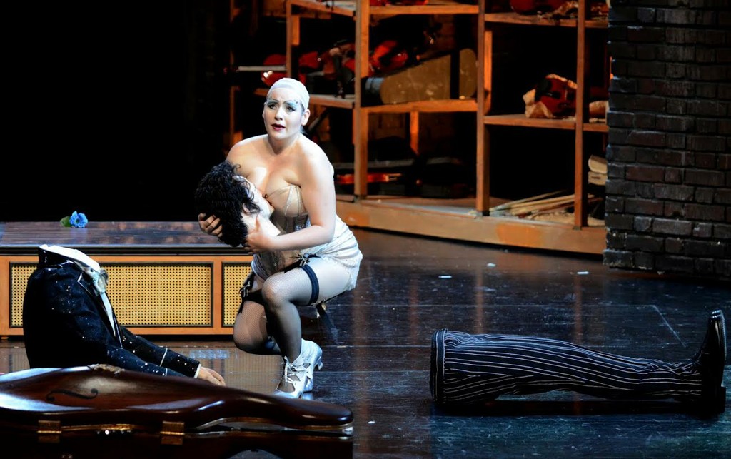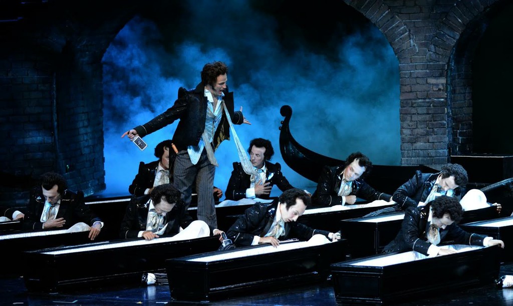 В брегенцских «Сказках Гофмана» занят состав артистов, не пользующихся мировой известностью, но для данной оперы и постановки он превосходен, несмотря на отсутствие выдающихся и незабываемых голосов (последние качества, думается, канули в Лету безвозвратно). Шведский тенор Даниэль Йоханссон в главной роли полностью индентифицируется с романтическим поэтом, пропущенным сквозь призму оффенбаховской музы: он драматичен, накален, страстно влюблен, полубезумен, на грани жестокой реальности и не знающего границ воображения. Голос Йоханссона звучит, волнующе вибрируя и способен передать тончайшие, почти неуловимые оттенки вокального письма Оффенбаха, тело Йоханссона «работает», вибрируя, на износ. Перед публикой не хороший артист в роли Гофмана, но сам ГОФМАН. Видя подобную интенсивность интерпретации, зритель-слушатель чувствует себя как на грани пропасти.