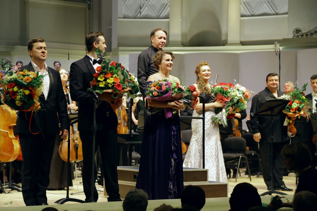 Состав вокалистов для этого концерта подобран очень ровный. В нём нет особо ярких голосов, но ощущается чувство ансамбля и точность подбора тембров. Ко всему вокальному корпусу исполнителей есть две основные претензии. Первая – певцы не всегда достаточно точно интонируют. И другая, ставшая уже общим местом, – неважная дикция у солистов.
