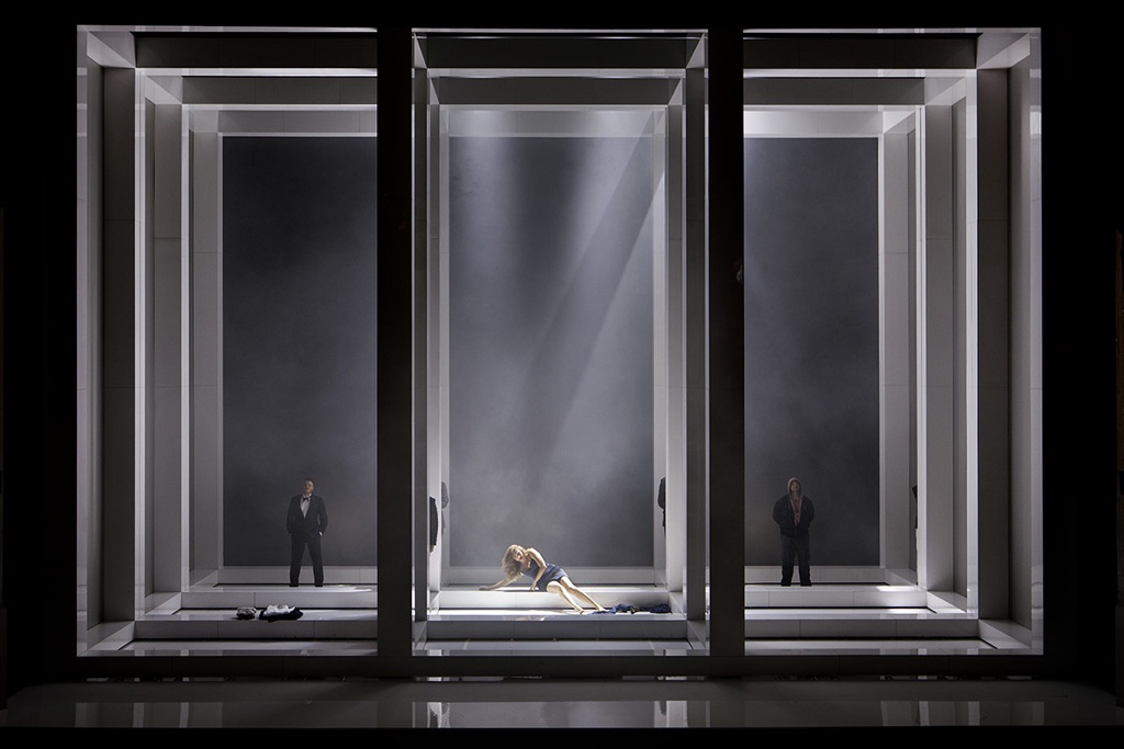 В этом спектакле папский посох так никогда и не расцветет – его просто в нем нет. Ощущение романтики позднесредневекового эпоса о состязании певцов в Вартбурге так ни на миг и не возникнет. Волшебство грота Венеры под горой Герзельберг мы так и не почувствуем. Вместо этого нашему взору предстает инсталляция в типично немецком конструктивистском духе, одетая в костюмы, ничего общего с эстетикой романтического театра абсолютно не имеющие. Чтобы увидеть этот повседневный бытовой гардероб, идти в театр даже не надо: достаточно просто выйти на улицу – результат будет тот же самый! Главным сценографическим остовом постановки в центральном (втором) акте является огромный, во весь габарит сцены, ячеистый куб-прямоугольник, который зрителю самому уже необходимо представить певческим залом замка ландграфа Тюрингии Германа, где по сюжету и должно происходить состязание миннезингеров. Экзистенциальный куб белых каркасных конструкций, залитый ослепительно ярким светом, от которого просто рябит в глазах, – «духовная» обитель племянницы ландграфа Елизаветы, средоточия добродетели и милосердия. Но это в теории, а на практике этот образ в спектакле весьма брутален и вслед за Венерой также весьма сексуален. Весьма характерный штрих: экспликация Елизаветы во втором акте под музыку вступления к ее выходной арии, как и спящей в первом акте Венеры, происходит тоже в «горизонтальном положении», и пластически эта сцена решена отнюдь не с пуританской сдержанностью. Этот центральный белый акт – холодное и настораживающее царство Елизаветы. Он обрамляется актом Венеры, с которого опера начинается, и финальным актом, в котором появляются уже и Елизавета, и Венера.