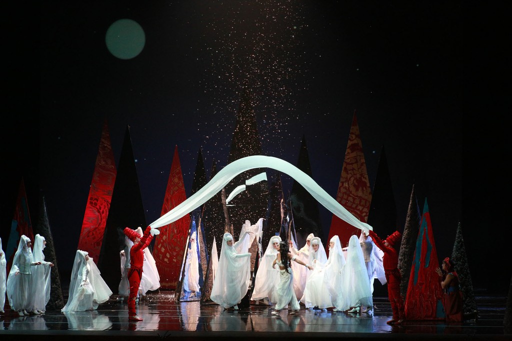 Оригинально решена сцена приношения сокровищ султану. Драгоценности – рубины, сапфиры и изумруды изображают дети в соответствующих костюмах. Своеобразная пародия на баланчинские «Драгоценности» в Большом театре.