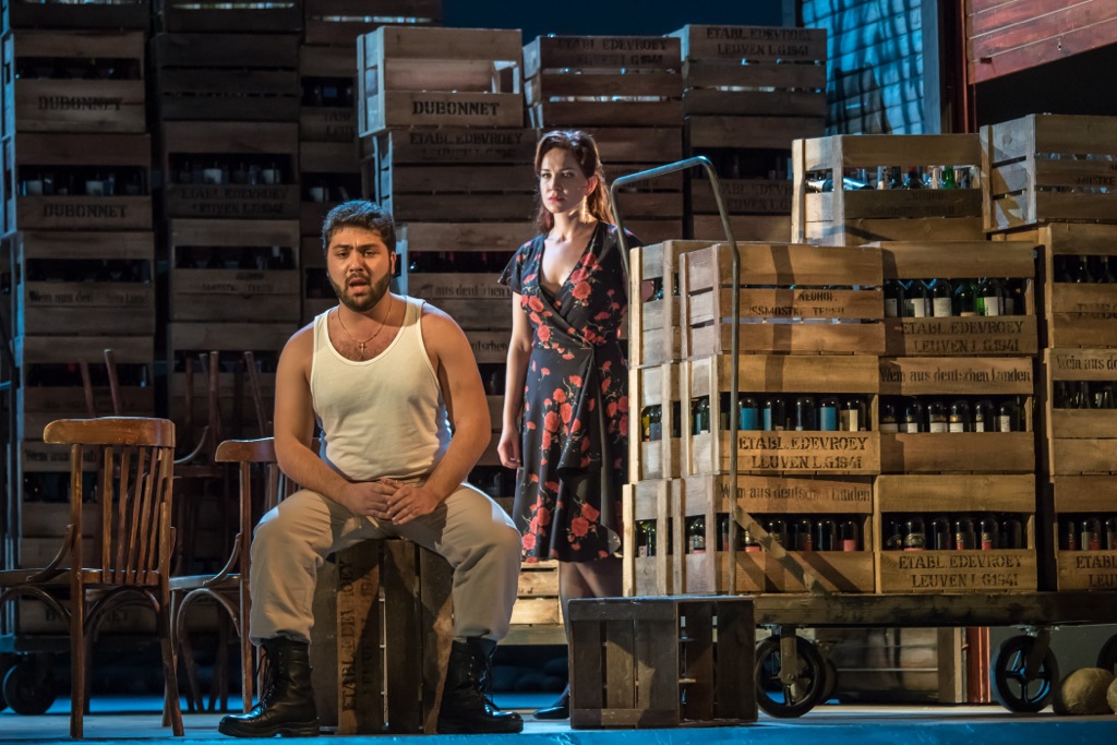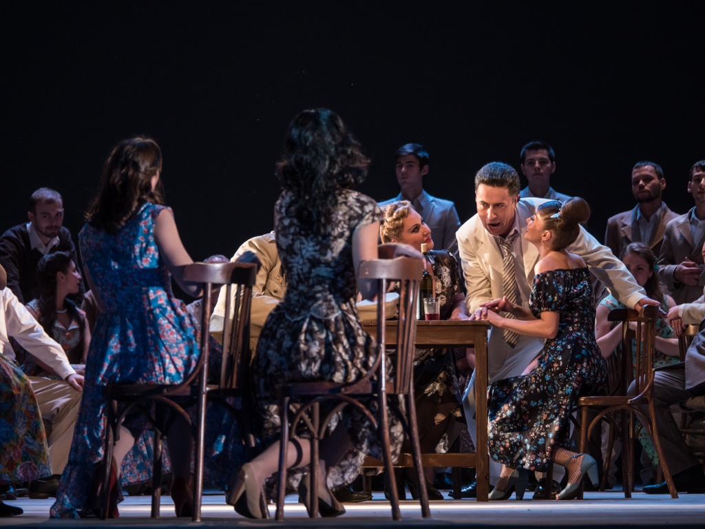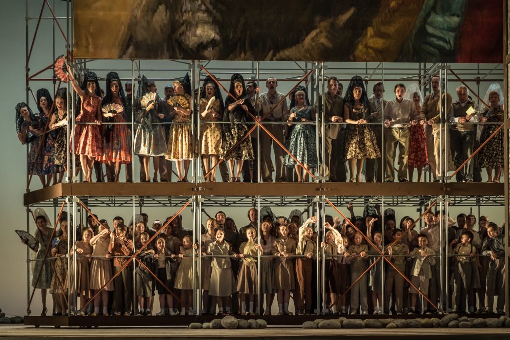 С первых тактов партитуры в зале возникла атмосфера единства оркестрового и вокального музицирования со сценическим действием. Старое доброе ощущение плодотворного сотрудничества дирижера и режиссера, того, что Джорджо Стрелер называл «общим порывом», не покидало почти ни на минуту. Этому способствовали и очень естественные в своей динамике переходы между музыкальными номерами и диалогами, а также, что еще важнее, внутри самих музыкальных сцен. Тут проявился, кстати, фирменный прием Александра Тителя, который можно назвать музыкально-драматической диффузией, когда образы одного эпизода, рождаются в другом. Вот характерный пример – не успели смолкнуть последние аккорды хора молодых людей, ожидающих выхода работниц табачной фабрики, как на сцену стал выплывать строй мерно идущих из ворот девушек… и лишь спустя несколько секунд зазвучала чудесная си-мажорная волнообразная как зыбучий песок мелодия, сопровождающая этот караван…