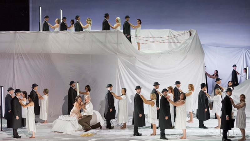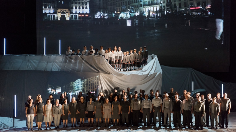Хор Лионской оперы тоже был на высоте (хормейстер — Филип Уайт), звуча чисто, слаженно и, когда надо, мощно. И это несмотря на то, что петь хористам приходилось в условиях порой экстремальных: то спиной к зрителям, то быстро перемещаясь по сцене, то толпясь на ней вперемешку с обладателями голосов других регистров и т. п.
