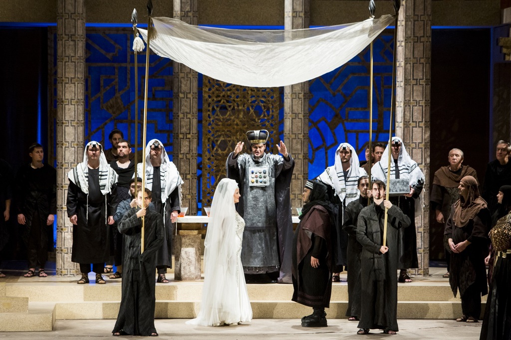 Разумеется, ожидания были велики как и ответственность за то, чтобы наиболее точно и эффектно реализовать подобный проект. Творческая команда театра Эркеля определенно приложила к этому множество усилий и средств. Сразу хочется отметить, что несмотря на широко распространенный, как в Венгрии, так и в остальных западных театрах трэнд осовременивания оперных постановок и поиска новых смыслов, в случае с «Царицей Савской», режиссер Чаба Каел предпочел менее радикальный вариант, придерживаясь «исторического стиля». И это исключительно выгодно отразилось на спектакле, ставшем истинной отрадой для глаз и, что еще приятнее, ушей.