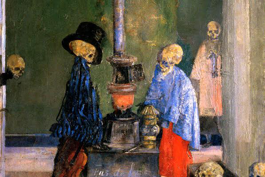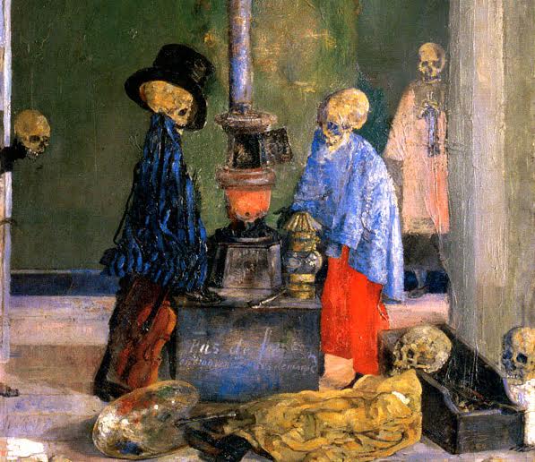 Любопытен символический штрих, нашедший отражение в программке к спектаклю, – там представлена репродукция с картины выдающегося бельгийского художника Джеймса Энсора, современника Пуччини – «Скелеты пытаются согреться». На ней изображена холодная обитель, столь похожая на убогий богемный приют, с палитрой, скрипкой и лампой, олицетворяющими творчество художника, музыканта и писателя. Пред нами четыре скелета – вот до чего довела нищета и безвестность. Они греются у печки и неизвестно – где окажутся завтра? Знаменательное художественное совпадение, а может быть и не просто совпадение. Ведь Энсор, как и Пуччини, прошел долгий путь непризнания и безвестности, прежде чем стал знаменит… (Е. Цодоков)