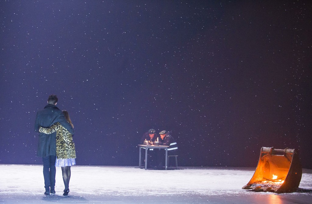 Понравилась – с первой же минуты – своей жизнерадостностью, импульсивностью, энергией, буквально льющейся со сцены в зал. И странно, если бы это было иначе – двое молодых высоких, атлетически сложенных красивых парня, толкутся друг с другом, пытаясь каким-то образом согреться, а затем, будучи не в состоянии больше преодолевать холод в мастерской с огромными заледенелыми окнами, сжигают свои рукописи и подвернувшийся стул. Все, что происходило на сцене, было сыграно столь натурально и естественно, что и я «замерзла» за компанию ними…