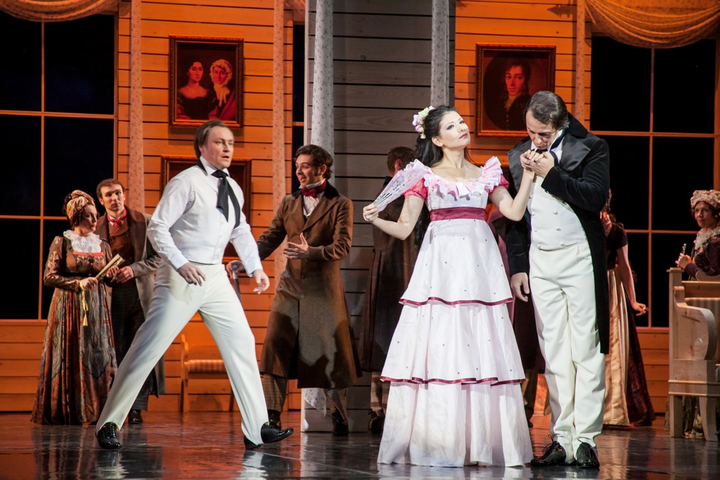 Подлинное открытие в партии Ленского – Владислав Емелин, которого я услышал впервые: даже и не подозревал, что в труппе есть такой прекрасный лирический тенор! Если Татьяна и Онегин – одна пара вершин драматургического четырехугольника оперы, то Ленский и Ольга – другая. Понятно, что в этой конструкции вершины Онегина и Ленского смежными быть не могут, поэтому их противостояние и разрушает весь каркас, едва его фундамент закладывается в завязке сюжета. Но удивительно, что у музыкально масштабных партий Татьяны и Онегина, ярко выраженных сольных шлягеров всё же нет: сложнейшая сцена письма Татьяны (безусловный фундаментальный шедевр оперной литературы XIX века), а также сцена ее отповеди Онегиным и его сольные монологи на петербургском балу, сравниться по популярности с арией Ленского, конечно же, не могут.