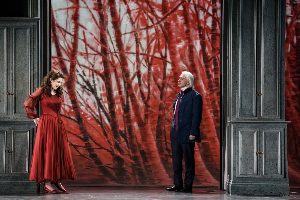 …И снова – не то, если говорить о постановке. Но, с другой стороны, она и не могла быть иной, потому что это возобновление первой постановки Каспера Хольтена, созданной им на посту директора королевской оперы – запутанной, неудобной для понимания, во многом потому что помимо главных оперных певцов наличествует «балетная» пара Онегина и Татьяны. Правда, в изначальной версии балетная часть доминировала, а теперь ее существенно урезали, оставив по сути один большой танец, который я бы назвала – «Онегин и женщины в его жизни». Но если танец как таковой сведен к минимуму, что мы видим теперь на сцене? Онегина на ней много, но, когда он не поет, то большей частью стоит с застывшей маской на лице. И совершенно несчастная, вечно страдающая Татьяна, с отчаянным плачущим выражением лица, начиная с первой сцены и кончая последней.