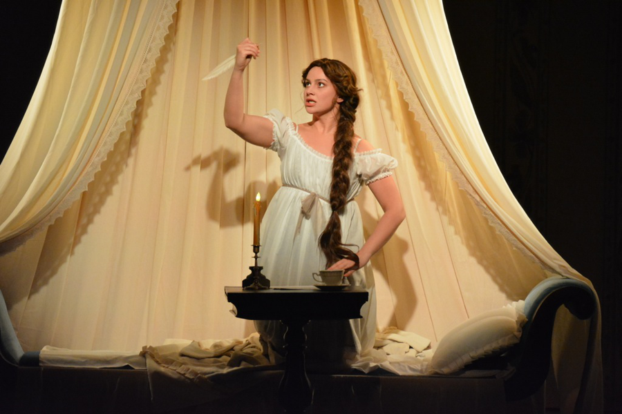 В день премьеры 23 декабря Государственный Мемориальный музей-заповедник П.И.Чайковского в Клину на один вечер предоставил экспозицию «П.И.Чайковский. Евгений Онегин. Лирические сцены». Несколько стендов с фотографиями, витрин с подлинными документами, портрет композитора в старинной раме, называемый «Чайковский с поднебесными глазами» – всё подобрано тщательно, любовно. Да и как может быть иначе, если рядом сидит сама Полина Ефимовна Вайдман, ведущий научный сотрудник музея и главный хранитель фонда П.И.Чайковского. Тёплая, почти домашняя атмосфера выставки продолжилась чествованием Полины Ефимовны, ставшей первым лауреатом Приза Ассоциации музыкальных критиков Москвы, на сцене Геликона. Такое начало премьерного вечера обещало чуть ли не аутентизм следования оригиналу, то есть постановке 1922 года. Хотя тут же внутренний голос бубнил про «нельзя в одну реку войти дважды» или более прозаичное: «Да кто ж помнит точно про 1922 год? Только начиная с 50-60-х годов ещё сохранились живые свидетели, а это уже «Онегин» с ветеранской бородой был!»