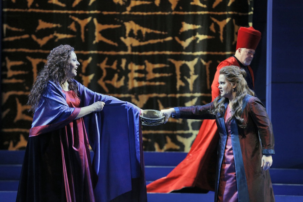 ДеШонг – превосходная Фенена. Она наградила свою героиню приятным тембром, мягким звуковедением. Глубокий и густой бас Дмитрия Белосельского идеально подошел для образа Захарии, сурового верховного жреца иудеев. Сергей Скороходов исполнил партию Измаила в лирическом ключе. Хотя в действительности эта роль требует более пронзительного звучания по сравнению с тем, что русский тенор продемонстрировал нам в этот вечер.