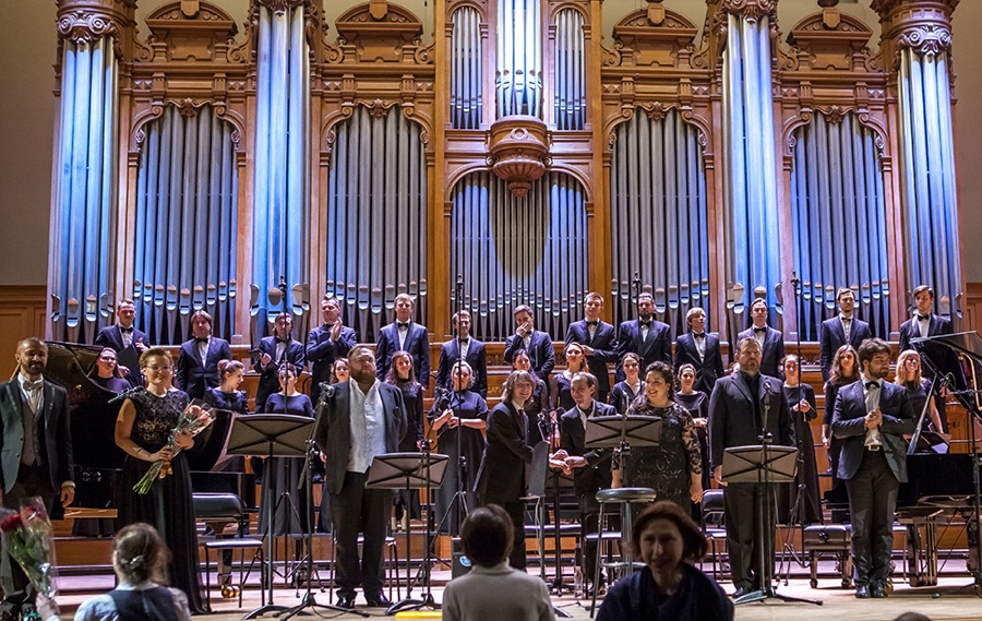 Сия пространная цитата больше всего подходит для характеристики вокального ансамбля Intrada. Клятву Россини об отсутствии фальшивящих «иуд» они выполнили с честью. Молодой коллектив, созданный и ведомый очаровательной Екатериной Антоненко, с первых тактов Kyrie подкупил свежестью голосов, их полным слиянием. Двадцать восемь человек ангельски истаивали в пиано, и заполняли Большой зал ликующим фортиссимо, чётко и легко пропевая сложнейшие фугато.
