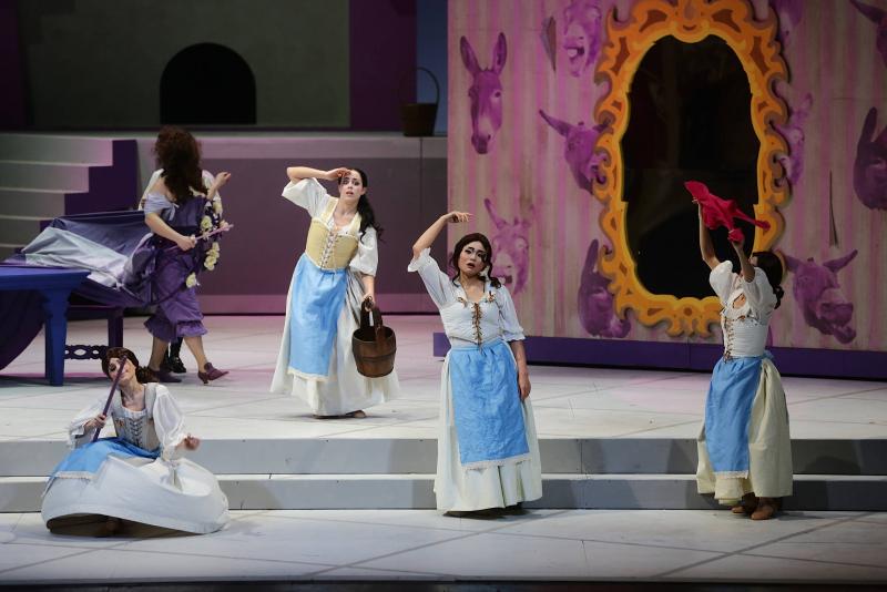 Режиссерская работа Паниццы свелась к малому количеству симпатичных идей, и реализованы они были не только певцами, но балетными артистами. По сцене часто бегали четыре Золушки, весьма простеньким образом иллюстрируя мысль о том, насколько тяжела жизнь героини, приговоренной к тысяче домашних дел. В дуэте Дона Маньифико с Дандини также были задействованы балетные артисты, которые по окончании сцены для пущего смеха попадали на пол, словно убитые. «Оживляж» полностью лег на плечи малочисленных танцовщиков в финале первого действия, в то время как певцы оставались практически неподвижными.