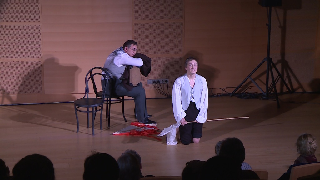 Мастер сценической композиции, Степанюк умело играет фигурами на практически пустом – лишь три стула – сценическом планшете. Сидящие, лежащие, переползающие, несущиеся в вальсе молодые актёры, их гибкие тела – податливый материал в руках режиссёра-скульптора выразительных мизансцен. Заметна здесь и рука хореографа Ильи Устьянцева, чуткого, творчески активного ассистента постановщика.