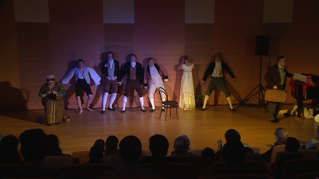 По определению отсутствующий в камерном зале оркестр возмещал Василий Попов, пианист с великолепным туше, чувством стиля и сердечностью. Да ещё дважды – вместо увертюры и в сцене бала – звучал в записи оркестровый вальс Баневича, после чего вступление фортепиано воспринималась как особо интимное, доверительное высказывание.