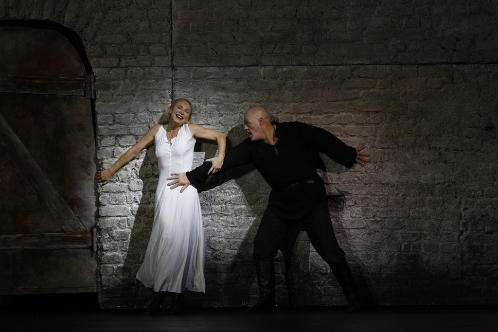 Более того, это даже, казалось бы, самый каверзный вид режиссерской оперы, когда визуальный ряд вполне исторический, но детали либретто при этом соблюдаются скорее как исключение, только когда совсем уж «из песни слова не выкинешь» (к примеру, мужской поясок, который как розовый чепчик Мими в «Богеме» уже есть в тексте, и от него некуда деваться, – присутствует, а окна, запертые двери или бытовой реквизит – явно лишнее, без которого можно обойтись). Постановщики на первое место выводят эмоции, заложенные в оркестровой ткани или высказываемые артистами в зал от первого лица. Грибки и банки с ядом, как выясняется, для этого совершенно не обязательны, без детализации этой «бытовухи» на самом деле лучше, понятнее, прозрачнее. Чувств этих каждому герою дано с избытком разных, противоречивых и многооттеночных – не одна среднерусская тоска и каторга царят на сцене, и не одно безусловное «зло ради зла», все сложнее и многозначнее. Агрессия, несмотря на «мягкую» вторую редакцию, сохранилась, но это скорее агрессия по Лоренцу, активный способ освоения мира, волевое начало, бегство от подчинения и ограничения свободы.