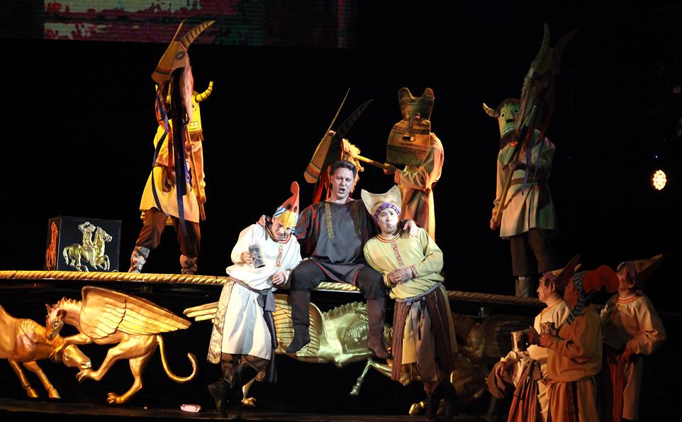 С басами в Якутском театре не так блестяще, как с женскими голосами. На партию-роль Галицкого был приглашён Андрей Валентий из Минска, который был хорош по всем статьям, и менее опытный Дмитрий Почапский из московского Театра им. Сац. Тоже голосистый, но актёрски пока формальный. Кончак Егора Колодезникова чрезвычайно колоритен, однако часть его партии пропел хан Гзак – Иван Степанов. Во второй вечер ханы снова выступили дуэтом, но основную часть партии отлично озвучил солист московской Новой оперы Владимир Кудашев. Такое раздвоение – мера вынужденная, но, надеюсь, временная.