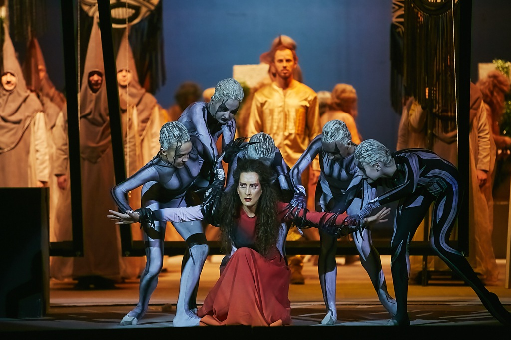 Волна огня горящего храма в виде паруса красного шелка накрывает и Язона: скорая смерть и ему уже напророчена Медеей. Совсем недавно эта постановка на краевом фестивале «Театральная весна – 2016» была названа лучшей премьерой сезона в музыкальном театре. Это признание достижения театра на региональном уровне, как и лауреатство в частных номинациях спектакля, внушает вполне законный оптимизм. В числе лауреатов постановки – художник по свету Евгений Лисицын, сценограф Ирина Сидоренко, а также солистки театра – сопрано Светлана Рацлаф-Левчук (Медея) и меццо-сопрано Ольга Басова (Нерис).