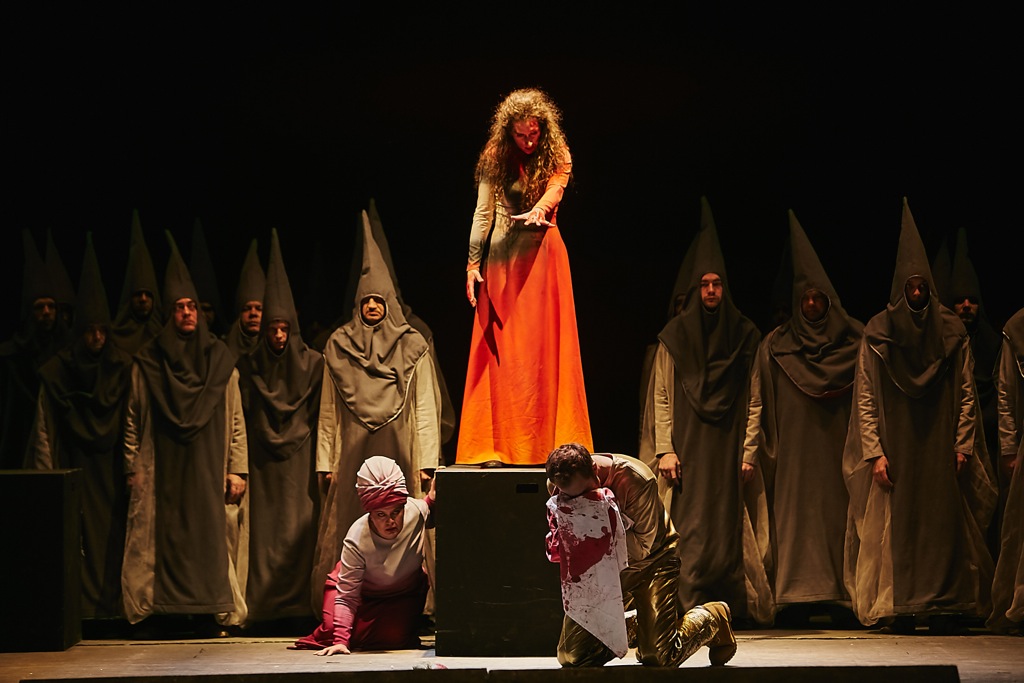постановщики выстраивают спектакль так, что он властно привлекает своим визуальным рядом, вызывает интерес многоплановостью массовых эпизодов и ансамблевых мизансцен, а в броской абстрактной символике заключает, прежде всего, сильное и понятное зрителю биение трагедийного психологического нерва.