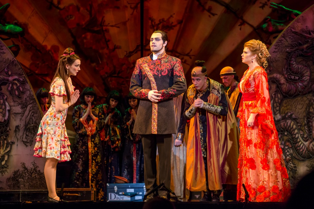 С некоторыми оговорками можно констатировать, что всё это в новом питерском спектакле в наличии. Колористически сочная и изысканно-нежная, в чётких маршевых или плавных вальсовых ритмах европейской части спектакля, жёсткая или пикантно-игривая в стилизованном китайском акте, яростно драматичная в момент психологической кульминации, партитура в интерпретации молодого дирижёра Алексея Нефёдова звучит полноценно. Контакт оркестра с исполнителями говорит о тщательной проработке и отрепетированности. А сценическую чёткость действа можно не обсуждать: постановщик спектакля Миклош Габор Кереньи из Венгрии этим славится. Великолепно отлаженные премьерные представления шли как уже хорошо обкатанный спектакль. Никаких скидок, всё на все сто. Это почерк Кереньи. Жёсткий враг непрофессионализма, он говорит: репетиции, репетиции и ещё раз репетиции. В Питерской Музкомедии он ставит четвёртый спектакль, и поначалу актёры просто выли. И сейчас подвывают, но знают: с Керо, как он себя артистично позиционирует, «не побалуешь».