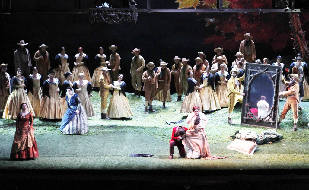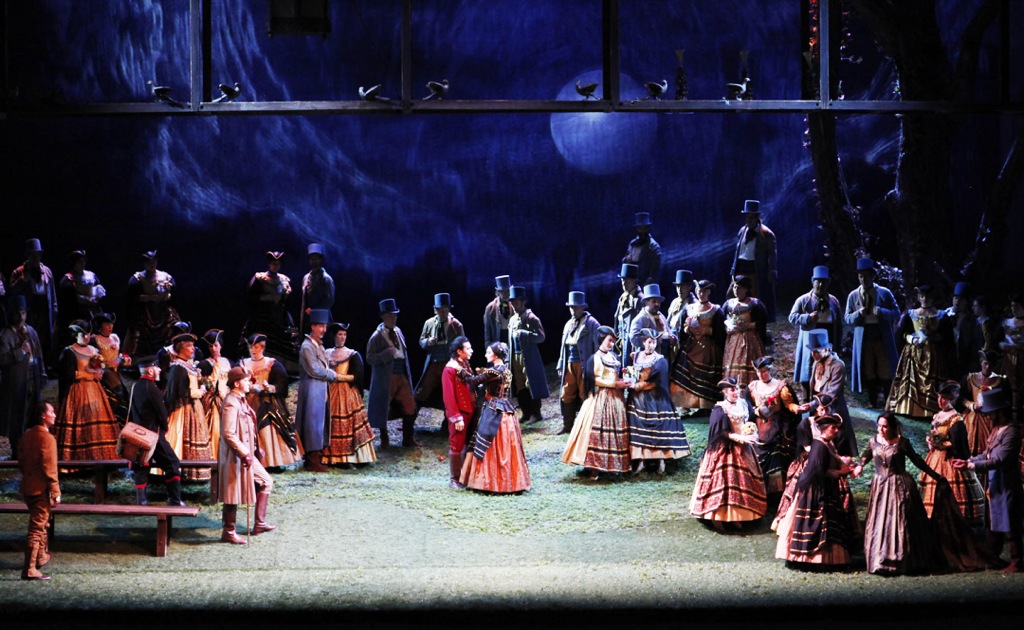 От Де Ана вполне реально ждать чудес, и аргентинский режиссер эти ожидания оправдывает. Как сценографа его вдохновляет английская живопись начала девятнадцатого века с ее трогательной любовью к деревенским сценам и французский импрессионизм с его “завтраками на траве”. Это «Сомнамбула» ярких цветов, свежайшего зеленого, ослепительного голубого, пылающего красного. Де Ана-режиссер в изобилии прибегает к видеопроекции, которая зрительно расширяет пространство и способствует созданию особой мечтательно-сказочной атмосферы. На сцене возникает некая Аркадия в узнаваемых художественных формах девятнадцатого столетия.