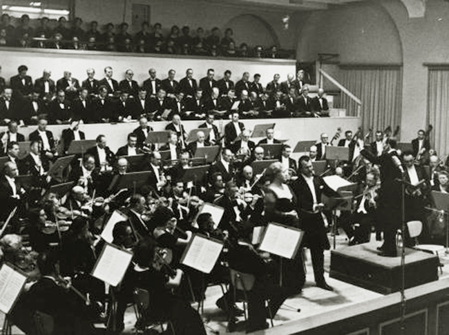 Игорь Маркевич дирижирует «Осуждением Фауста». Монтрё. Фестиваль «Музыкальный сентябрь», 1959. Фото: Collection Allegra Chapius Markevich.