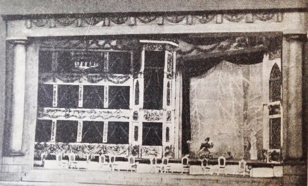 Смолич предположил, что армейский офицер Герман не мог появиться на придворном балу и Дмитриев переносит действие в Александринский театр. Дирижер Юрий Гамалей, ребенком участвовавший в спектакле, вспоминает: «На сцене был выстроен фрагмент зрительного зала театра. В середине стояли кресла партера, на которых сидели солисты и миманс. В глубине, с левой стороны, немного наискосок были ложи в три яруса высотой, отделанные красным бархатом. В ложах размещался хор. В правом углу сцены была выстроена на возвышении сцена «театра», на которой артисты балета танцевали в античных костюмах. Дважды эта декорация перекрывалась на переднем плане декорацией «фойе театра», где происходили сцены с Германом и ария Елецкого».