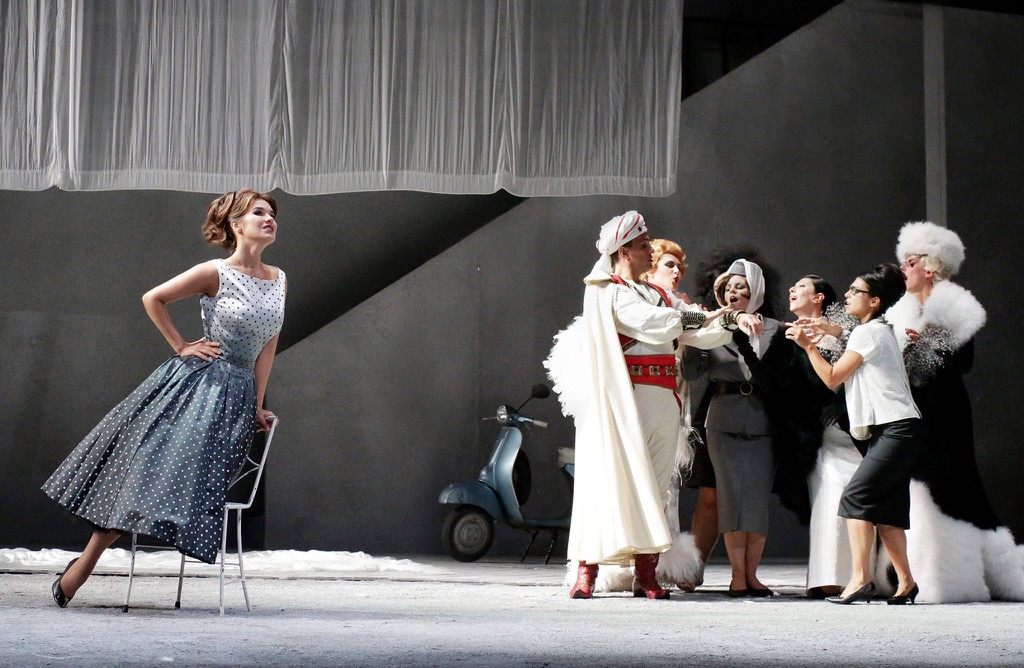 Ольге Перетятько незачем завидовать «божественной» Клаудии Кардинале; наша соотечественница воистину удивительная артистка, сцена для нее – естественная среда обитания. Ей невероятно идут женственные платья времен «Восьми с половиной», одна ее походка и манера закуривать вызывают восхищение. К сожалению, певица чувствовала себя не лучшим образом, что сказалось на ее вокале на первом представлении оперы (она не участвовала и в гала-концерте «Флорес-20»). Заключительная ария, которую каждый любитель и знаток Россини ждет с замиранием сердца, звучит без должного блеска и энергии. На последующих спектаклях Ольга пела гораздо лучше.