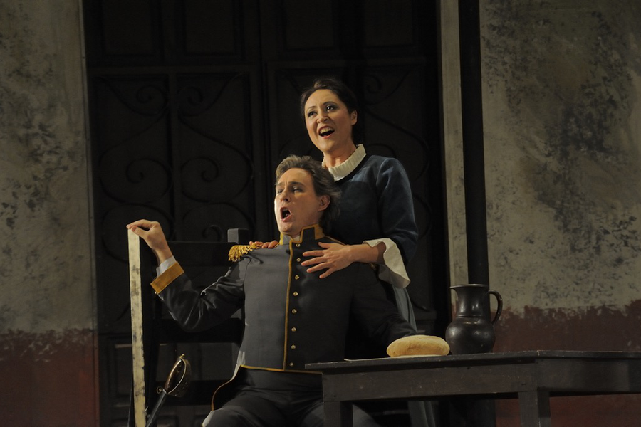 Роль сержанта Хозе исполнил приглашенный солист Екатеринбургского театра оперы и балета Ильгам Валиев – сильный, но несколько ограниченный в подвижности тенор. Его Хозе тоже предстает персонажем зависимым, скованным условностями и ограничениями.
