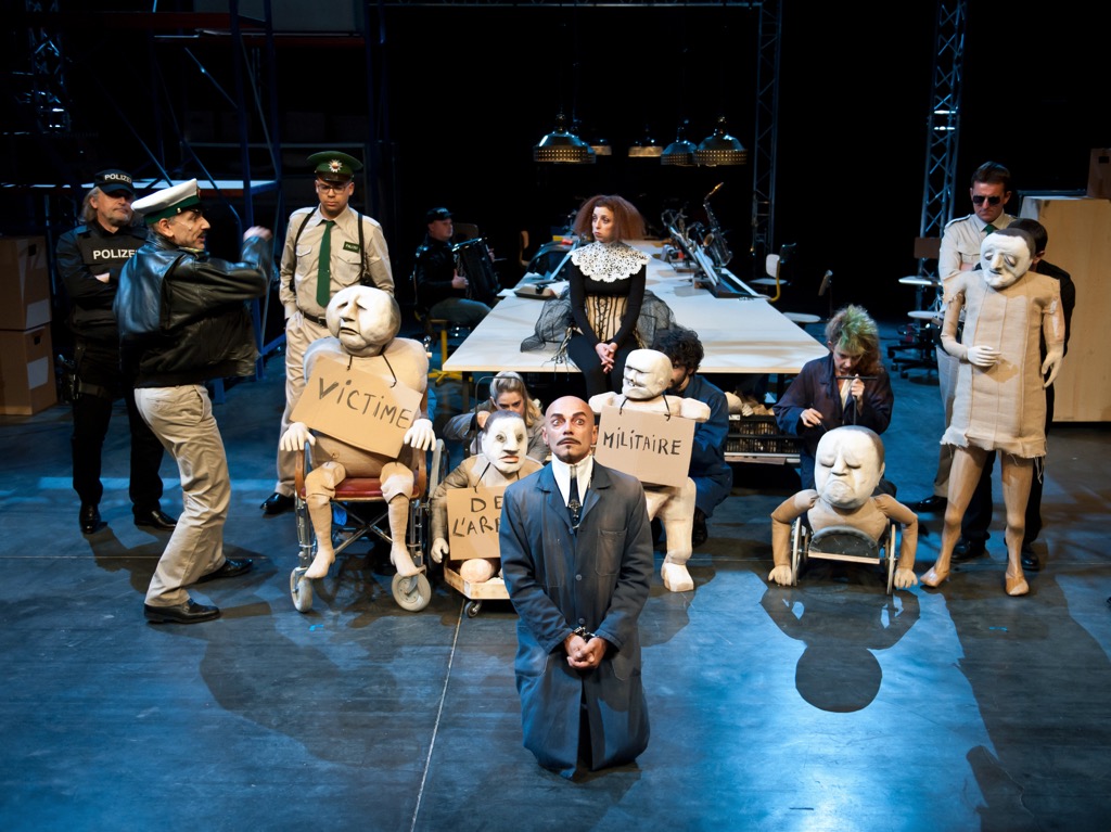 Декорация, придуманная Лизой Наварро, — нечто вроде ангара промзоны, наподобие, скажем, склада в «Икее» — быстро и эффективно преобразовывалась по мере надобности то в конюшню, то в полицейский участок, то в бордель и т. д. Важным структурным элементом этого сценического пространства был узкий и длинный стол, повёрнутый торцом к зрителям и разделявший площадку на две равные части. За столом этим сидели музыканты, которые принимали участие в спектакле на всём его протяжении, изображая то рабочих на «фабрике» Пичема, то гангстеров, то полицейских, то клиентов в публичном доме… Жан-Робер Лэ дирижировал ими, одновременно играя на трубе, — как это было принято во времена биг-бэндов.