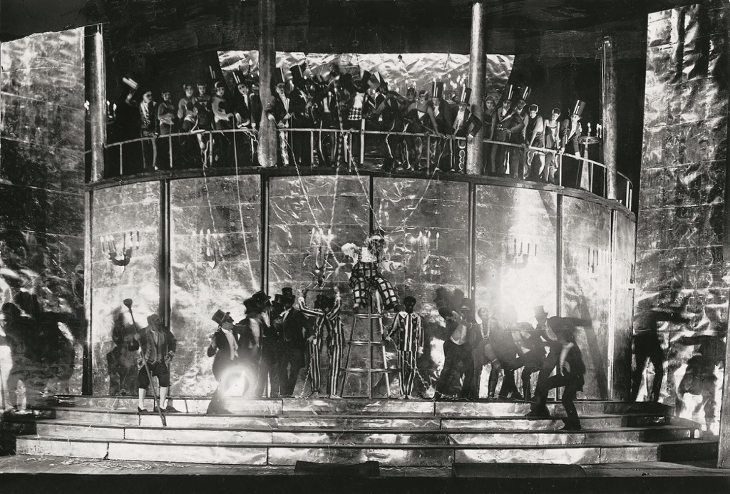 В отрывистом свете театральных прожекторов и софитов на фоне грандиозной металлической конструкции, под изощренную атональную музыку кружились в финальном танце фигуры-маски – обитатели урбанистического сверх-города. Сумасшедшая конструктивность музыки, жестяные декорации и акробатическая хореография отражали устремления эпохи в преддверье Второй мировой войны. Зритель в зале буквально физически ощущал приближавшуюся катастрофу, современную «пляску смерти», гибель цивилизации под натиском индустриальной машинерии.