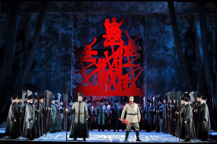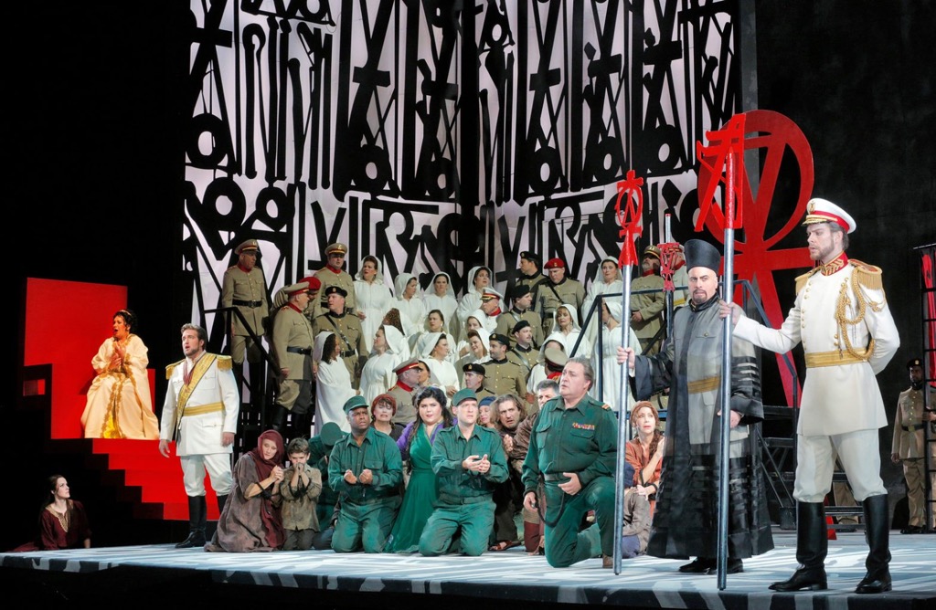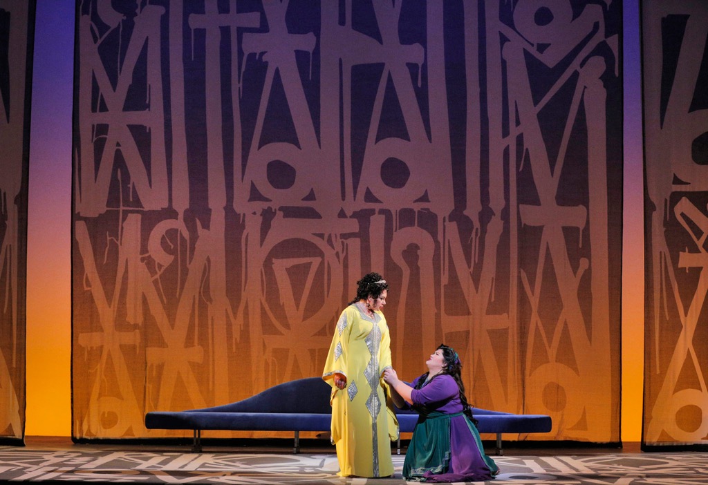 Но больше всего поражает хореография Джессики Лэнг (при участии хореографа Клифтона Брауна). Никакой псевдоэкзотики здесь вы не найдете. В первой сцене в храме танцоры представляют нам некий абстрактный танец. В триумфальной сцене артисты балета, облаченные в военную форму, маршируют, поднимают руки в воинском приветствии и грубо домогаются женщины в кроваво-красном платье. Танцевальные номера в «больших операх» часто выглядят неуместно и излишне, но в данном случае хореография тоже работает на сюжет; высокой похвалы заслуживает пара солистов — Рэйчел Литтл и Джекинс Пелаес.