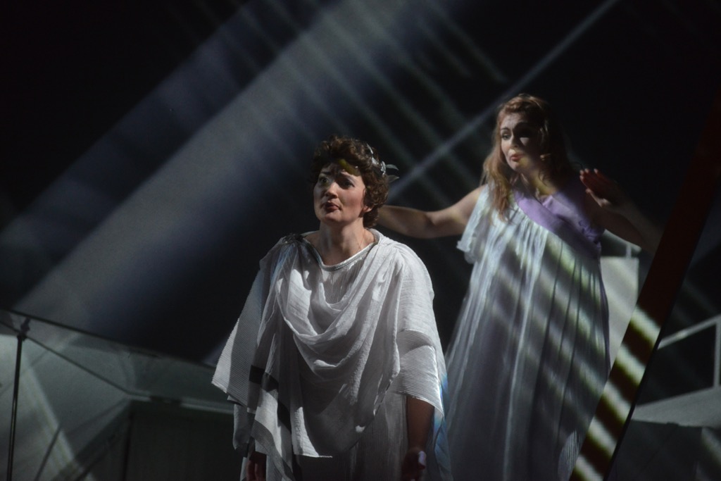 Львиная доля успеха в «Орфее» – исполнительница заглавной партии. Виктория Преображенская создана, чтобы носить белоснежный длинный хитон в складку и венок на подстриженном в кружок парике (художник по костюмам Мария Вольская). Высокая, статная как античная статуя, с величавой пластикой, крупными правильными чертами лица. Даже мелькнувшая досадливая мысль в начале — «ну вот, любовь будут меж собой крутить тётеньки!» — вскоре исчезла. Орфей – архетип, миф. Возможно, бесполость образу на пользу. И потом, была в облике и даже тембре Преображенской некая мужественность. Хотя здесь не всё однозначно. Тёмное драматическое меццо, с контральтовыми низами, неплохо справлялось с фиоритурами в первом акте. Но к финалу, а знаменитая ария «Потерял я Эвридику» звучит в развязке действия, то ли усталось, то ли недостатки школы стали заметны у певицы. Да и в целом её молодое цветущее лицо странно сочеталось с возрастным тембром Азучены или чуть ли не Графини из Пиковой дамы.