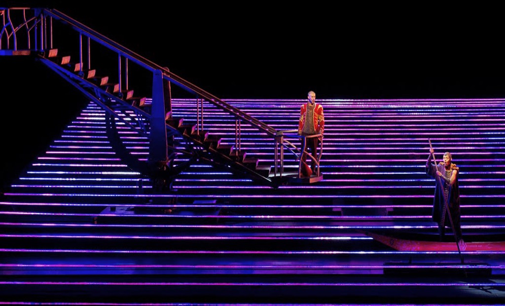 По ходу того, как оркестр исследовал невероятное тембральное многообразие партитуры, раскрывая ее бурные эмоции наряду с мерцающей красотой, мы могли наблюдать то же самое и на сцене. Постановщики придумали протянуть через все сценическое пространство длинные полосы со светодиодными лампочками, которые представляли собой море, разделяющее влюбленных (Майкл Керри работал над сценографией и костюмами, а Лионель Арну – над видеодизайном).